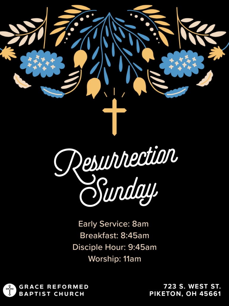 On Sunday, March 31, Grace Reformed Baptist Church will be celebrating the resurrection of Jesus Christ! We invite you to bring your family and friends and join us for any and all of our services: